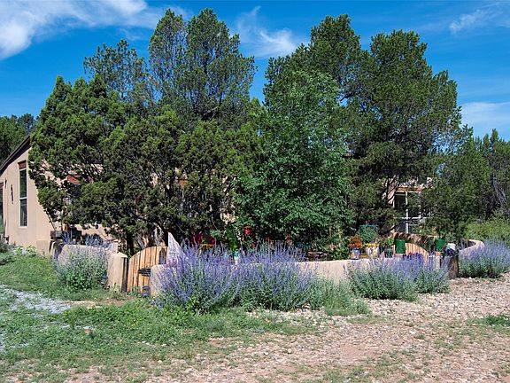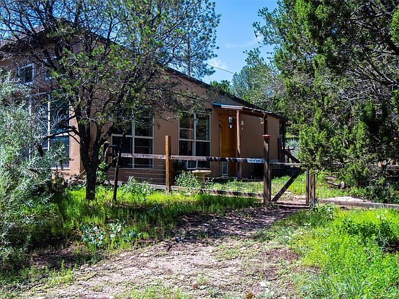 MAGICAL LIFE IN THE COUNTRY; This lovely home w/ 2 bedrooms and 2 baths has a lovely comfortable feel. A bright an sunny office, and ample living space, if you desire to be inside. The outside is where all the magic happens, Bright and colorful foliage throughout the whole 2 acres. A vegetable garden behind the house and an outdoor Movie area are on the opposite side of 2 interior fenced areas for the 4 legged family members, as well as an outdoor Sauna. A french drain diverts water away from the home and a picnic table is situated to catch the beautiful views which surround the home. take a 10 minute stroll to the Pecos River, but other walikg trails are available as well. This could be a lovely full time home or a weekend getaway.