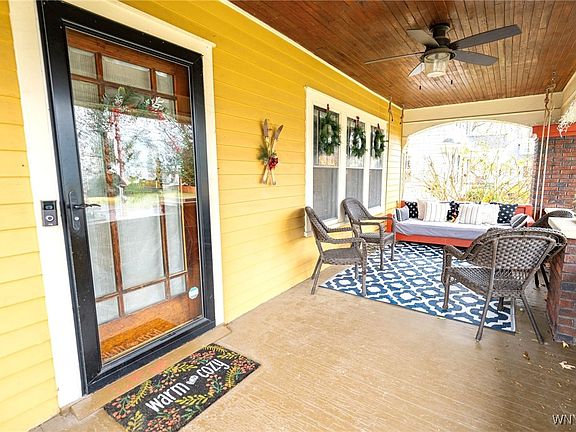 Full front porchStainless steel appliancesBonus back balconyBuilt-in shelvesImpressive curb appealExposed beamsWood plank tile floors