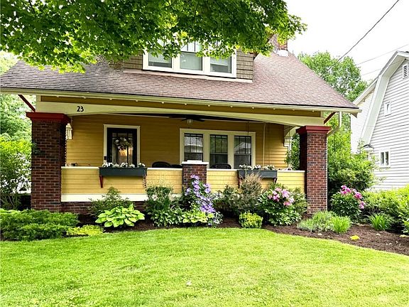 Charming bungalow-style home in the heart of Hamburg village boasts impressive curb appeal with new exterior shaker siding & accents, a full front porch, & attractive landscaping. This completely remodeled home features 4 bedrooms & 2 bathrooms, with the first floor showcasing a stunning kitchen equipped with classic white cabinetry, quartz countertops, stylish backsplash, exposed beams, wood plank tile floors, island & stainless steel appliances, plus access to mudroom with custom bench and storage & back outside door. Main floor also offers a dining & living room with hardwood floors, fireplace, & built-in shelves, a beautifully renovated full bath and bedroom. Upstairs, three spacious bedrooms with walk-in closets, a bonus back balcony and an updated full bath. The dry basement adds over 350 sqft of living space with egress windows, including a sm private room suitable for recreation or an office. A partially fenced backyard features a large concrete patio, a detached garage with new door, and a covered entertaining area complete with a dry bar and seating. Additional amenities include AC, a newer furnace and new hot water heater, and an updated 200 amp electrical system as well as 100 amp subpanel for negotiable electric car charging station. Total Sq foot indicted is tax records plus mudroom (basement space not included) Showings start Dec 4th with any offers being considered Dec 12 at noon. Do NOT miss out on this gorgeous home, it has everything to offer and more!