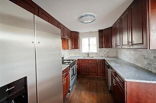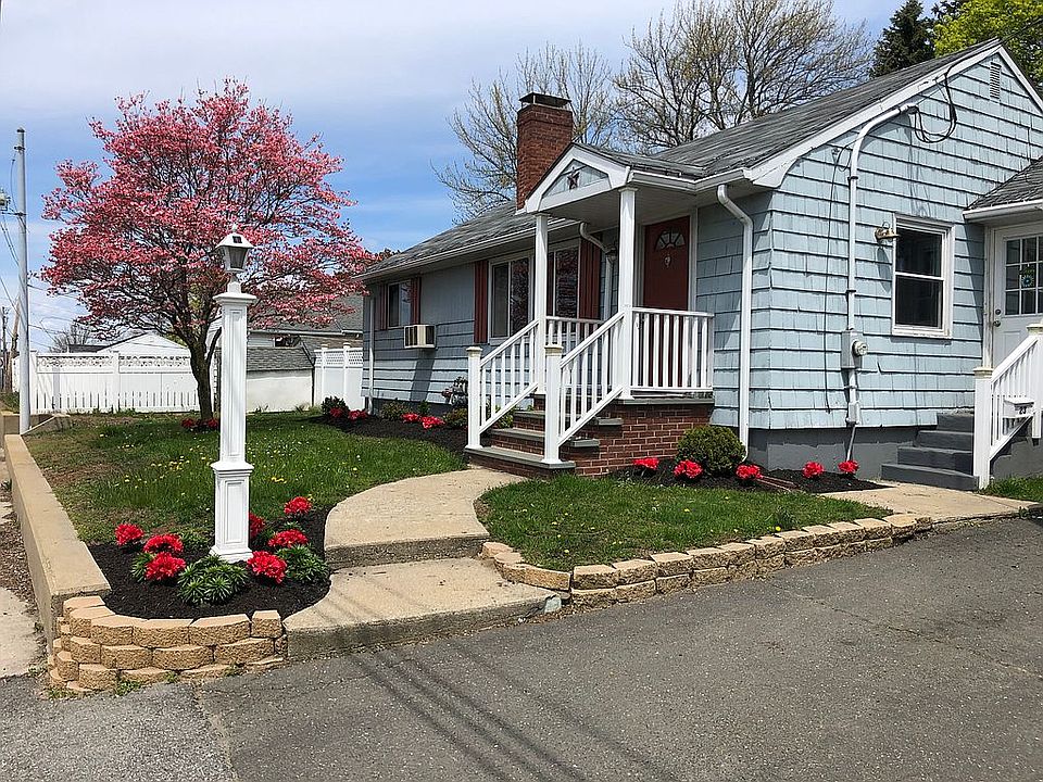Beautifully RENOVATED 3 bedroom 1 full bath and finished living area basement with 3/4 bath ranch. 2016 new cherry kitchen with granite countertops, designer tile backsplash, stainless appliances. Brown glossy true hardwood flooring throughout. Updated gutter system with electric de-icer cabling. Bright and clean open livingroom / dining area with natural wood burning fireplace. 2016 - new high efficiency York gas heating air handler system and 40 gallon hot water tank. 2020 - new high efficiency York central air conditioning Newer plumbing and tiled bath with 2 stackable washer/ dryer units. Multiple updated replacement windows installed. Separate side entrance leads to completed extended living/family dry basement with good ceiling height. Low maintenance good size attached deck in a landscaped fully fenced in back yard. Full workshop/shed with electricity. Multiple car (4) off street parking driveway. Manicured front yard with landscaped mulch and flower beds.