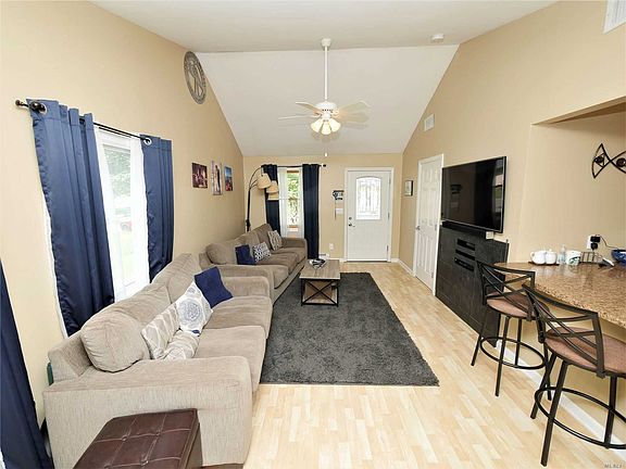 Well maintained 3 Bedroom Ranch with updates galore! Open Floor plan offers soaring ceiling in the Living Room with expanded Dining Room, gorgeous Eat-in Kitchen with beautiful cabinetry, stainless appliances and barstool seating. Features a Basement with outside entrance, Gas Heating, Central Air, 200 Amp Electric Service, Andersen Windows, updated Roof, Siding & Cesspool. Fully fenced yard with lovely curb appeal, sprinklers, deck & shed. True pride in Ownership. Affordable living with Low Low Taxes only $5,941 with Basic Star.