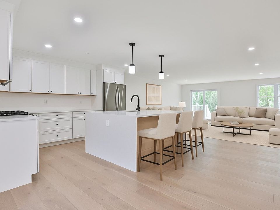 This elegant exterior unit offers a harmonious blend of sophistication and comfort, featuring 2 bedrooms, a spacious bonus room, and 2.5 impeccably appointed bathrooms. Every detail reflects superior craftsmanship and intentional design. Upon entry, the open-concept main level welcomes you with 8-inch wide-plank white oak hardwood flooring, exuding warmth and understated luxury. The gourmet kitchen is a chef’s dream, showcasing 36-inch soft-close white cabinetry and your choice of premium granite or upgrade to quartz countertops, all bathed in natural light from thoughtfully positioned windows. Unwind in the inviting living area, complete with a glass-front natural gas fireplace, or step onto the private rear deck to take in serene, panoramic views of the surrounding landscape. Upstairs, the primary suite is a true sanctuary, offering a generous walk-in closet and a spa-inspired ensuite with a double vanity. The upper level also includes a second well-appointed bedroom, a full bathroom, and a versatile bonus room perfect for a home office, media room, or guest space. Additional highlights include a two-car garage and an oversized basement, providing ample storage and space for your vehicles, and a location that perfectly balances peaceful seclusion with commuter convenience—just moments from Route 101. All pictures are from a previous built unit from same developer using almost identical specs and layouts.