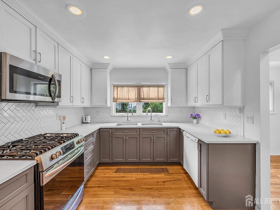 Just what you've been waiting for! Welcome to this classic Crossways split located in the heart of Edison, offering comfort, convenience, and style. Perfectly situated in close proximity to the train, this home sits on an oversized 75x121 fenced-in lot, providing both space and privacy. The first floor features a versatile layout with a bedroom, a family room that can also serve as an additional bedroom, a laundry room, and a full bath. Upstairs, you'll find three more bedrooms along with a full Jack-and-Jill bath. The kitchen was very recently renovated with a trendy design, modern finishes, and the rare luxury of two large sinks, making meal prep and entertaining a breeze. The spacious living room and dining room flow seamlessly together and open to the expansive yard, offering plenty of space for gatherings or simply enjoying the outdoors. Throughout the home, you'll find freshly polished hardwood floors, while the first floor boasts brand-NEW flooring. Additional highlights include central air conditioning, a two-car wide driveway, a Brand-NEW washer (2025) and dryer (2024), and a backyard shed for convenient storage. With its combination of functionality and style, this move-in ready home offers the perfect balance for today's lifestyle. Don't miss this opportunity to make 23 Barlow Road your new home!