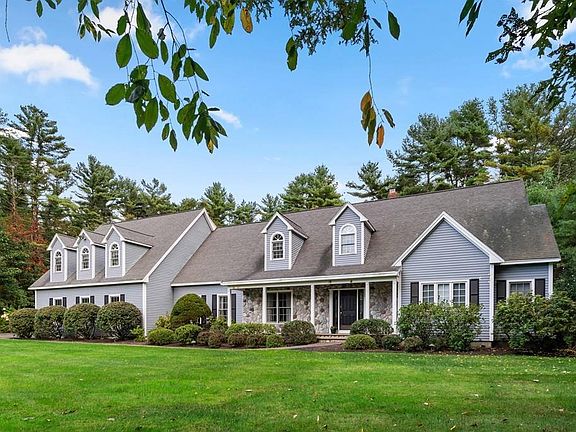 Sensational, and superbly maintained expanded Cape on a fabulous landscaped level lot featuring luxurious pool and recreation area. There are five bedrooms, including a first floor master suite and 4 spacious second floor bedrooms. Enter the vaulted ceilinged foyer to the living room with soaring cathedral ceiling and a fireplace with warming wood stove, opening into a large kitchen and spacious dining room. Delightful sunroom off kitchen overlooks heated gunite pool and recreation area with tiki hut, grill island, and waterfall. Upstairs there is a large loft area and spectacular media room with fireplace. The grounds have three storage buildings as well as a screened in gazebo. The interior is newly painted and home has central air and is located on a lovely cul de sac. Bring the extended family as this home also includes a huge finished basement with kitchenette setup, retro room, gym and second home office.