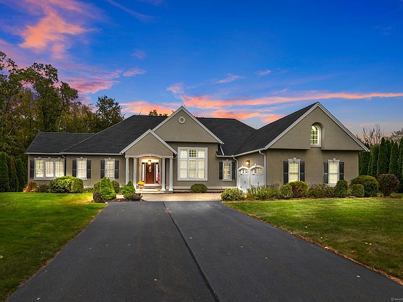 Discover seamless single-level luxury in this impeccably maintained Tunxis Heights home. In Northern Bloomfield, this stucco, ranch-style home has been tastefully finished to perfection. Step inside to Brazilian cherry hardwood floors and soaring ceilings throughout an expansive, open-concept layout. The spacious living room is centered by a gas-insert fireplace. The centrally located kitchen is designed for a modern home chef with its granite counters, a propane cooktop, and stainless steel appliances. The kitchen opens up to a beautiful wrap-around deck/porch with an incredible, panoramic view of the backyard and greenery beyond. The adjacent dining room has elegant crown molding and chair guards. Retreat to the primary bedroom suite with its huge walk-in closet and its own full bath complete with a whirlpool tub and standing shower. Practicality is key with main-level laundry, leading down the hallway to the attached two-car garage. The basement has excellent ceiling height and plenty of open space for a ton of storage or a possibility to finish. This home has state-of-the-art utility systems including on-demand hot water, central air, and hot air heating are in excellent condition, ready to provide year-round comfort. The fully-fenced backyard offers plenty of peaceful outdoor space. You're going to absolutely love this home - this is the gem you've been waiting for!