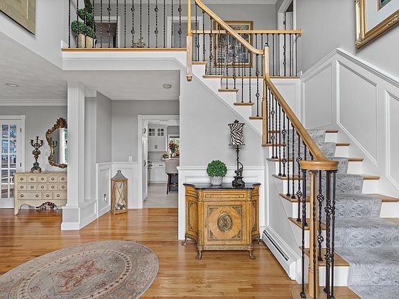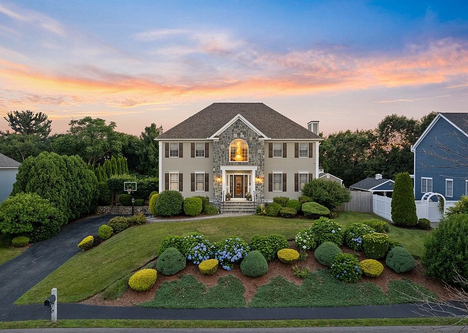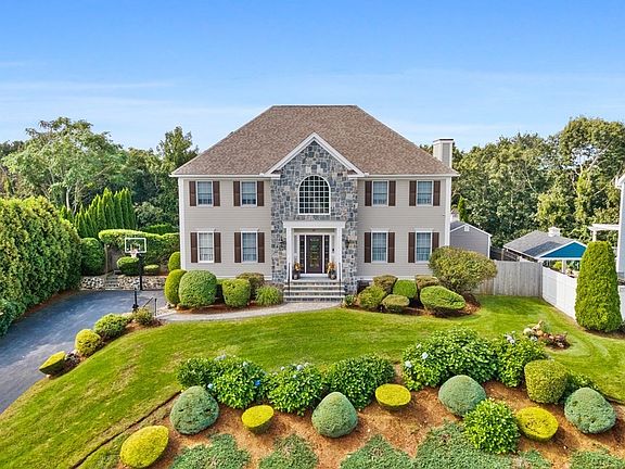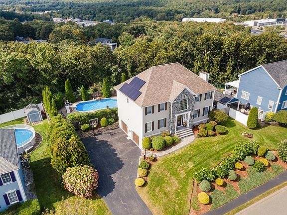 Welcome to 23 Birch Pond Drive, a magnificently designed and meticulously maintained single family that is ready for its newest owners. This pristine Colonial, perched on an elevated parcel on a quiet street, has undeniable curb appeal — with elegantly manicured landscaping and beautiful exterior stone work. As you enter the foyer of this sun-drenched home, you are greeted by vaulted ceilings and a spacious dining room to the left, living room to the right. The kitchen offers high-end stainless-steel appliances, a wine fridge, a large island, and ample cabinet space with a connected family room and home office. The top floor consists of 4 bedrooms, a shared full bath, and a primary bedroom with stand-up shower, tub, and walk-in closet. The backyard is an entertainer’s dream, with a heated in-ground pool, waterfall, pool house, multiple seating areas, and a fire pit. 23 Birch Pond Drive truly has it all.