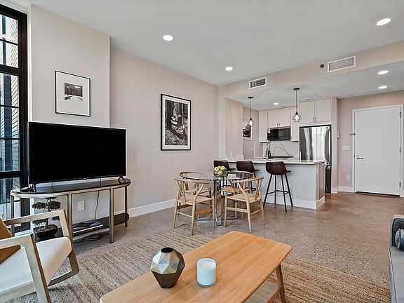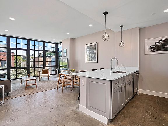 Step inside your new 654 sqft one bedroom sanctuary and be captivated by the attention to detail and upscale finishes that await. Polished concrete floors throughout give the space an industrial-chic vibe. The open-concept layout emphasizes the large kitchen island, a hub for culinary creativity and social gatherings. The kitchen is adorned with stainless steel appliances, including a dishwasher and full-size fridge, a remarkable five-burner Bertazzoni gas range, and and full size oven to elevate your cooking experience. The Peerless floor-to-ceiling windows will flood your living space with natural light, forging a seamless connection between indoors and outdoors, leading you from the open kitchen and vast living quarter, where you and your guests will undoubtably enjoy countless hours of entertainment, relaxation, and enjoyment.