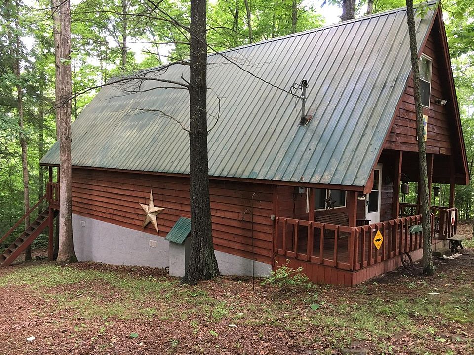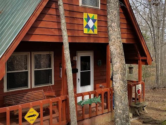 This lovely A-frame cabin sits on a spacious 3/4 acre lot near Cave Run Lake. Great location in Cub Run with easy access via its circular driveway. The property has a nice yard surrounded by trees. Plenty of space to garden, landscape, or just relax! Home features 2 bedrooms and 1 full bath, extra-large crawl space, county water, septic, and central heat & air. The cabin comes with most items in it - even including the washer, dryer, pots & pans, bed linens, and towels. This would make a great year-round or vacation home. The covered front porch, rear deck, and hot tub in the bathroom make this a perfect place to spend your nights after fishing and boating all day on Cave Run Lake. It's only 9 miles to Long Bow Marina and just a short drive to other recreational amenities - less than 25 miles to Red River Gorge, Sky Bridge, & Natural Bridge State Park. (Buyer to verify address)