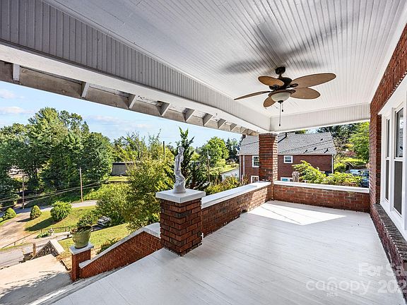 Location! Views! Charm! Welcome to this 1920 brick home brimming with character and modern comforts, ideally perched just one block up from Main Street in Canton. Set on a spacious .27-acre lot with additional driveway access, this beautifully maintained 4-bedroom, 2-bathroom home offers 1,576 square feet of inviting living space spread across two stories plus a basement. There is an additional 643 square feet upstairs that is not included due to the ceiling height that is just 2 inches below 7 feet. Step inside to a warm and welcoming living room with a wood-burning fireplace, perfect for cool mountain evenings. A cozy sunroom just off the living room captures lovely views and natural light, making it the perfect nook for reading, working, or morning coffee. The dining room and kitchen flow effortlessly for entertaining, and a main-level bedroom and full bath add versatility for guests or a home office. Upstairs, you'll find a surprisingly spacious primary bedroom with a walk-in closet, two additional bedrooms, and a dedicated laundry room with a storage closet. Original charm meets thoughtful updates with new windows (2022) that bathe the home in sunlight (with the exception of windows in 3 bedrooms not replaced), while vintage details like baseboards, lighting fixtures, and brickwork maintain the home's timeless character. Enjoy year-round mountain views from your covered front porch, or retreat to the covered back porch overlooking a fenced backyard complete with a firepit and tranquil water feature — perfect for entertaining or relaxing under the stars. The fully fenced yard offers peace of mind for pets. Nestled in a walkable neighborhood, you're just steps from Main Street's shops, restaurants, farmers market, seasonal parades, festivals, and the Pigeon River Scenic Walking Trail. Twenty minutes to Asheville. This is a rare opportunity to own a piece of Canton history with modern updates and unbeatable convenience. Homes like this don’t come around often — schedule your showing today before it’s gone!