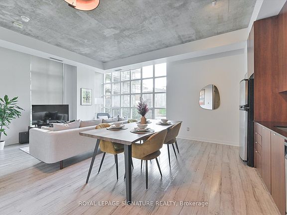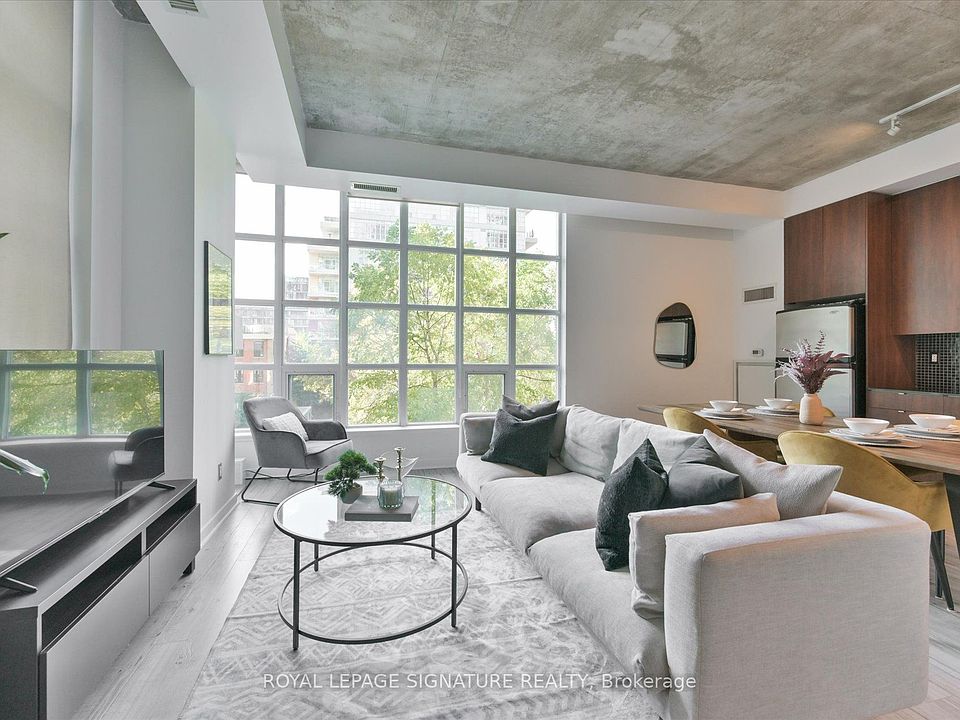 Live in Style at Quad Lofts King Wests Best Kept Secret! Step into over 860 sq ft of bright, open living right in the heart of downtown. This spacious 1+den loft at Quad Lofts is tucked away in a quiet courtyard, yet only steps to King, Spadina, and Adelaide. With soaring 10-ft ceilings, huge floor-to-ceiling windows, and polished concrete floors, this loft mixes cool industrial vibes with modern comfort. The sleek kitchen has built-in appliances, lots of storage, and a stylish backsplashperfect for cooking, entertaining, or winding down after a busy day. The oversized den has sliding doors and is fully encloseduse it as a second bedroom, office, or guest room. This flexible layout adapts to your lifestyle and gives you room to grow. Outside your door, enjoy a vibrant community Nutbar cafe and Othership wellness studio are just around the corner, St. Andrews Dog Park is across the street, and the TTC is at your doorstep. With top walk, bike, and transit scores, youre connected to everything. Underground parking is included. Whether youre a first-time buyer or a busy professional, this is your chance to own in one of King Wests most sought-after buildings.