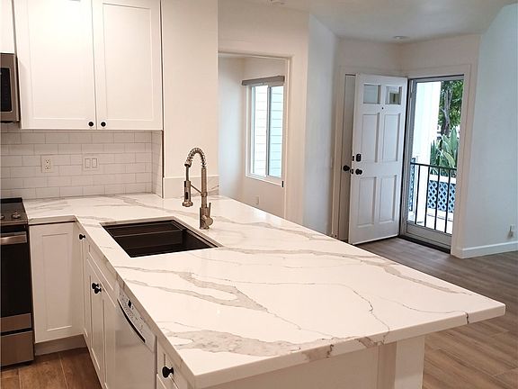 Pristine, white, impeccably clean describes this inviting renovated Woodbridge Townhome located in the Laurels community. Not a shred of carpet is to be found in this charmer, having an all new combo of cement plank tile and vinyl plank. The Living Room is large and airy, with vaulted ceilings, recessed lights, and a gas starter fireplace. The Kitchen sports white cabinetry, stainless steel appliance, and an oversized deep stainless sink. The laundry room is adjacent to the Kitchen, where the Washer and Dryer will remain with the unit. Bring your own Refrigerator. The Home is equipped with new dual-paned windows and sliding doors. The detached 2 car Garage affords 1 space that is shared with the neighbor. This wonderful, move-in ready rental Home showcases a Bedroom suite downstairs, and a Bedroom upstairs, both with recessed lights and ceiling fans. And both Baths have walk-in stone showers with frameless glass doors and white vanities with Quartz tops. This very well maintained home has an entertainers front patio that faces Balboa Court and the community Pool. You'll love this home, and you'll love the Lakes, trails, parks and all that the City of Irvine offers.