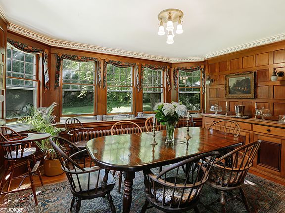 Charming English Tudor style home in Noank built by W Cornell Appleton with an assortment of distinguishing characteristics and overflowing with fine craftsmanship throughout. Featuring stone, stucco and half-timbers, the exterior of the home is complemented by the new slate tile roof. The interior features a gourmet kitchen designed for hosting large groups. Your guests will experience a sense of openness and ease. The bright, airy kitchen boasts an original stone wall, white cabinetry, island with gas cooktop, built-in wall ovens and a large attached breakfast room addition with vaulted ceilings, skylights and French doors. Formal dining room with mahogany paneled walls, elegant leaded pane glass window and built-ins. Spacious Living room with large hearth fireplace. Generously proportioned bedrooms and spaces with solid mahogany paneled doors, molding and trim, French glass doors, large groupings of windows and hardwood floors throughout. Perfect setting with water views, park like grounds and gardens, stone carriage house garage, circular drive all on 3 acres of land with two potential building lots. Convenient location within walking distance to Noank Village, beaches, marinas, hiking trails, restaurants and Downtown Mystic only 2.5 miles away. The architectural integrity and construction of this two-story Tudor is without equal, not easily replicated and an excellent buy at 599,000!