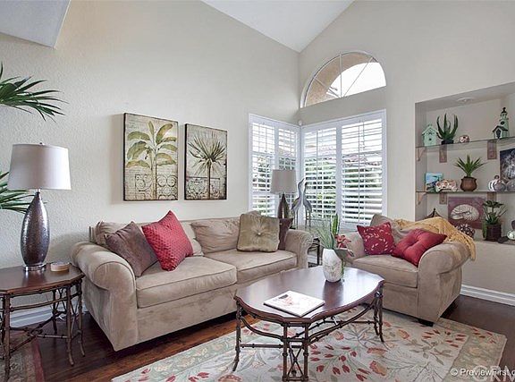 This turn key beautifully upgraded home in Montego of Rancho San Clemente has stunning Ocean and Catalina views and rests on a single loaded street towards the highest point in the community. The gated courtyard entry and spacious back yard are professionally landscaped with brick hardscape, a spacious yard with clear fencing and a "sea-forever" deck from the second level that runs the back length of the home and is accessible from the back yard as well as from the master and upstairs loft or bedroom. The kitchen has been remodeled with cherry cabinets, gorgeous rainforest matt granite, stainless appliances and a breakfast bar. There is a loft addition above the family room that is currently being used as an office with custom shelves and French doors that lead out to the deck with unobstructed Ocean Catalina and City lights views. Acacia Hard wood floors throughout both levels and staircase, except the entry, kitchen, laundry and baths that have gorgeous porcelain pavers throughout. Custom paint, built-ins, base boards and plantation shutters enhance this homes designer feel and pride of ownership. All baths have been remodeled with granite and glass enclosed showers, tumbled stone and porcelain tiles. A must see for your turn key ocean view buyers!