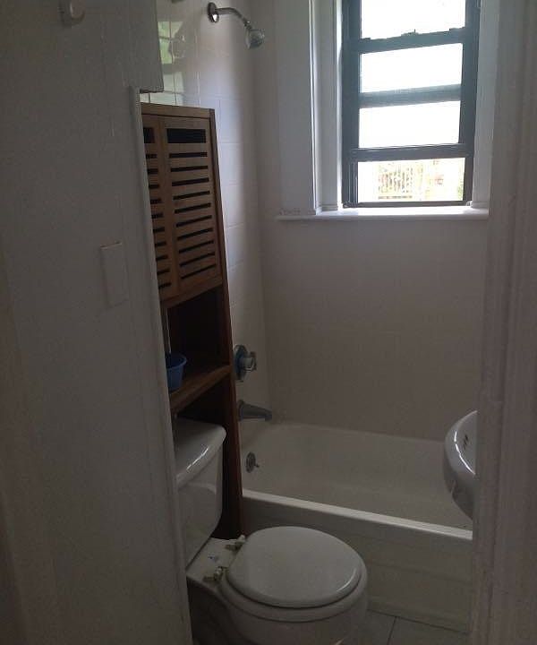 Available June 1st -- upper floor -- spacious 1 bedroom apartment with large eat-in-kitchen, tile floors in kitchen and bathroom. Modern bathroom. Hardwood floors. Very sunny space. On-site laundry. Private deck