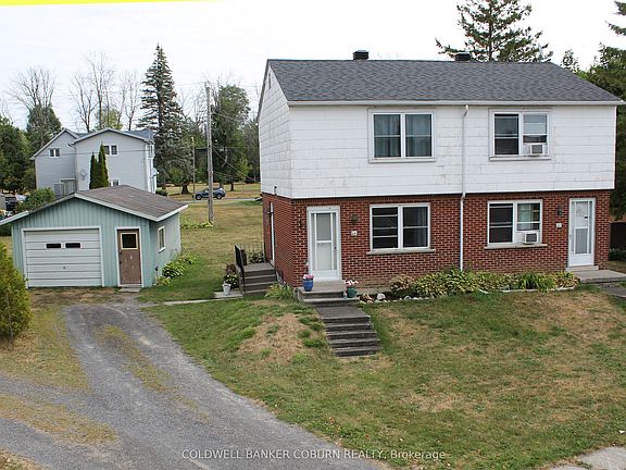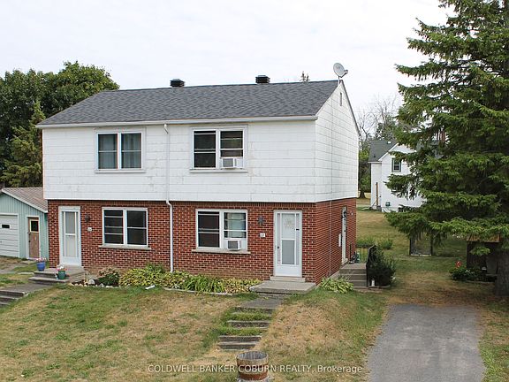 Two-Unit Property on Quiet Cul-de-Sac - Ideal for Investors or First-Time Buyers. This property features two semi-detached units within one building, each offering a practical layout and convenient location. Situated on a quiet, tree-lined cul-de-sac near the St. Lawrence River, these two semi-detached homes are within walking or biking distance of shopping, banks, restaurants, parks, a swimming beach, boat launch and dock, medical and dental clinics, curling club, arena, library, and the Upper Canada Playhouse. Each unit is a mirror image of the other, consisting of two bedrooms and one bathroom. Both units include full basements with Gas Furnaces and Rental Gas Hot Water Heaters installed in 2018. Notable updates include: Windows updated in the 1990s; Roof shingles replaced in 2020; New electrical panels installed in 2016; Sewer laterals for both units done in 2020 and one of the bathrooms was renovated in 2024. The interiors feature hardwood flooring on both the main and upper levels, along with a solid hardwood staircase.This is an excellent opportunity for investors or first-time buyers looking to live in one unit while generating rental income from the other unit. Note: Room types, square footage, and dimensions listed are for one unit only. The property includes one garage, currently used by the north-side tenant. Interior photos are from 2017, when one of the units was vacant.