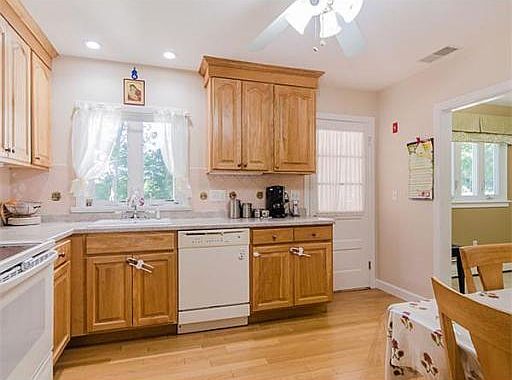 Spacious, lovely and well maintained split entry that must be seen. It is warm, bright and inviting. The main floor has 3 bedrooms including a large master, eat in kitchen, formal dining room, living room with fireplace, and sun porch. The walk out lower level has a family room with fire place, office and large bonus room. There is plenty of storage space, a one car garage with additional ample off street drive way parking. This home is set on a generous level lot with a huge patio! Private and convenient location on a quiet dead end street near Bentley University. Main floor central air in 2010, newer windows, Boiler 2008.