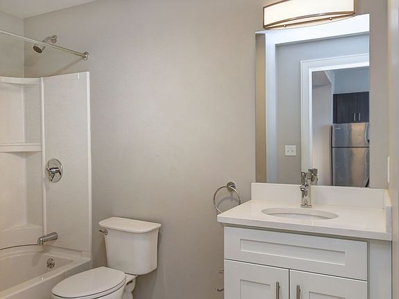 Spacious one bedroom has stainless steel appliances, granite countertops, custome cabinetry, energy efficient HVAC, and in-unit laundry
