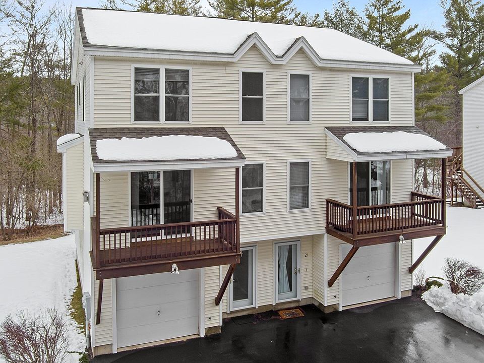 Welcome to 23 Chandler Lane - a beautiful townhouse located in the desirable Plumer Court Condominiums community of Epping, NH. This 2-bedroom, 2-bathroom home offers 1,345 square feet of living space. As you enter the home, you'll be greeted by an inviting open concept living room with gas fireplace, featuring hardwood flooring and plenty of natural light. The living room flows seamlessly into the dining area and kitchen. The home was updated in 2017 with granite countertops and stainless steel appliances. The second floor features two bedrooms, an office/study and a full bathroom. This townhouse also includes a two-car tandem garage, central air conditioning, and decks overlooking the front and the back yard which overlooks a private wooded area. This property is conveniently located near shopping, dining, and entertainment options. Easy highway access yet in a quiet country setting. Condo fee $325 per month. Pets allowed. Don't miss the opportunity to make this lovely townhouse your own. Delayed showings begin at open house March 25 and March 26, noon -2. Offer deadline Monday, March 27, at 5 pm.