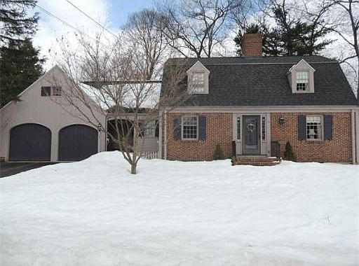 JOHNSON ACRES at its best. Walk to town, schools and parks. Beautiful Brick Front Cape. Level lot with in-ground pool. Fireplaced LR with antique paneling W/W over hardwood. Charming DR with hand painted murals and built-ins W/W over hardwoods, leads to 14x12 screened porch with brick floor overlooks pretty backyard and pool (easily converted to 4-season room) Kitchen with 6X8 breakfast nook. Cozy study with built-in bookcases and desk. Master bedroom with fireplace and built-in drawers. Bedrooms 2 & 3 with hardwood and built-in drawers.. second floor access to unfinished space over garage, perfect for new master suite or family room. Finished lower level with fireplace and 1950's knotty pine wet bar, plus great storage and bulkhead. Great garage storage with sink.