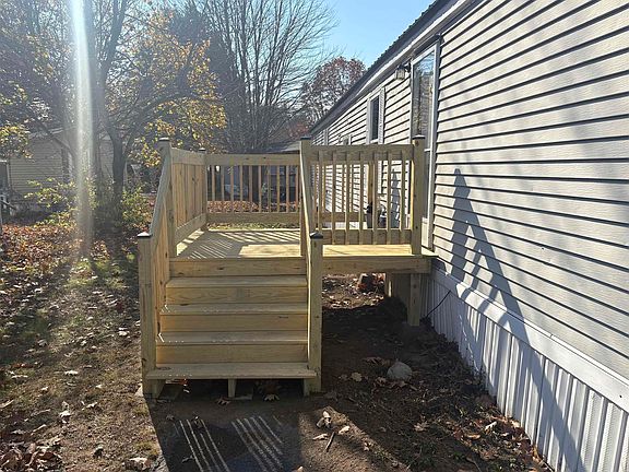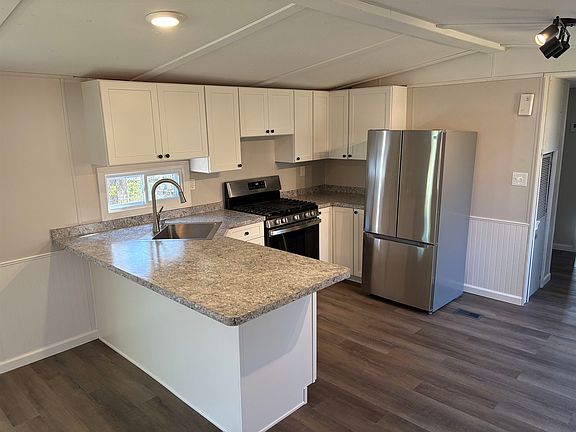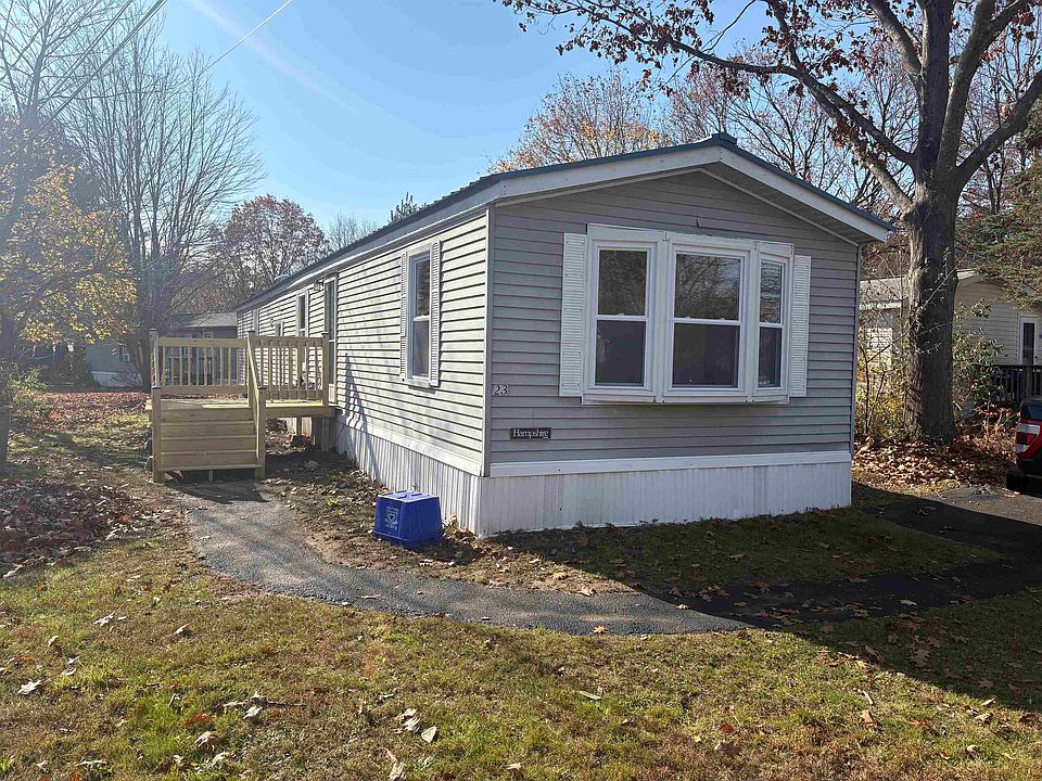 Newly renovated home in pet friendly Exeter River Coop with no age restrictions! This bright 3 bedroom, 1 bath home has all new windows, flooring, kitchen cabinets, appliances, lighting, two decks and the list goes on! Freshly seal-coated driveway can park two cars. Nice yard space to enjoy the outdoors and the park has a community pool. Quick close possible, park approval required. Showings start at Open House Saturday 11/2 10-12pm. Agent is seller.