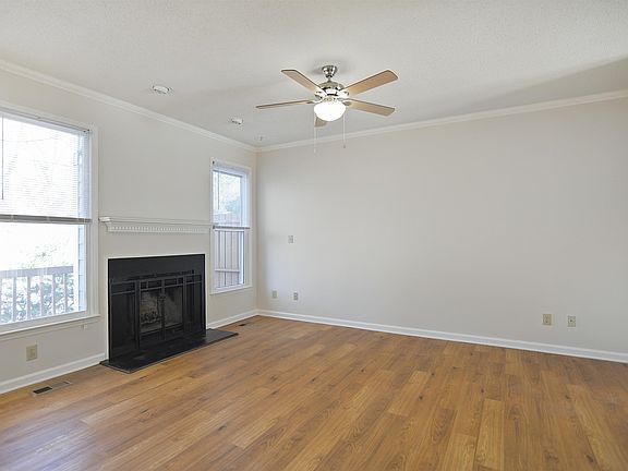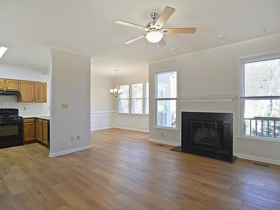 Move in ready end unit townhome in prime Durham location! Hardwood style luxury vinyl plank floors throughout 1st floor. Fresh interior paint. 9 ft ceilings. Spacious family room features wood burning fireplace. Sunny dining room with wainscoting. Kitchen includes gas range & all appliances convey. Large primary suite has vaulted ceiling, walk in shower, dual vanities & walk in closet. Ceiling fans in all bedrooms. 1 car garage. Sealed, walk in crawl space! Deck overlooks nice wooded buffer.