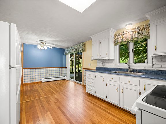 Exceptionally clean and well-maintained 4-5 bedroom 2,000 sq ft colonial-style home with two full bathrooms. The first-floor bathroom is handicap accessible. The den on the main level features a closet, making it an easy conversion to a fifth bedroom. Hardwood floors run throughout the house, even under the carpet. The eat-in kitchen boasts a new slider to an open deck, perfect for seamless indoor-outdoor living, and a step over to a second large covered deck. Upstairs, you'll find four spacious bedrooms and a full bathroom. Electric heat is installed in all upstairs rooms, so you have the ability to use whichever rooms you want there is copper pipes in place for a potential future conversion for the upstairs to oil heat. Additional features include a central vacuum system, a large living room, and a dining room, both with beautiful bow windows. All aplliances are newer with the refrigerator purchased in 2024. Major updates include: furnace (2010), oil tank (2012), 50-year shingles roof (2013), and breakers (2021). This home is move-in ready - schedule a viewing today!
