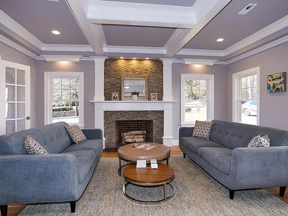 - Liv Dscrp: Fireplace, Flooring - Hardwood, Recessed Lighting, Ceiling - Beamed, Crown Molding