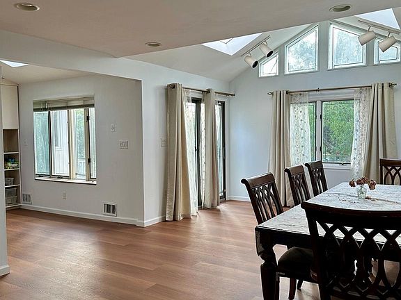 High ranch homeBig windowsNew bathroomLower level with fireplaceCathedral ceiling