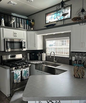 Want to be part of Wells beach seasonal residents...wait no further as this stunning 2023 Woodland Park Model with Florida room is waiting for you! This Park Model offers an open concept kitchen & living room area with cathedral ceiling that is fabulous for entertaining all in one space, Central Heat and 2 mini splits for cooling and heat including the Florida room. The primary bedroom is a queen and offers built-in cabinet areas for tons of storage. The loft area hosts two beds and a sitting area with its own A/C for your comfort. The home is being sold fully furnished and ready to enjoy coastal living. There is also a washer/dryer hook up in the Florida room.