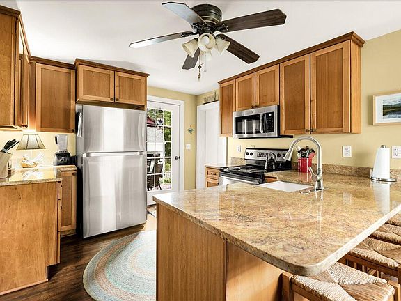 The professional cottage-style landscaping softens the corner setting, and a quiet side deck creates a pocket of privacy. Out front, the covered porch is the ideal perch for people- and dog-watching.