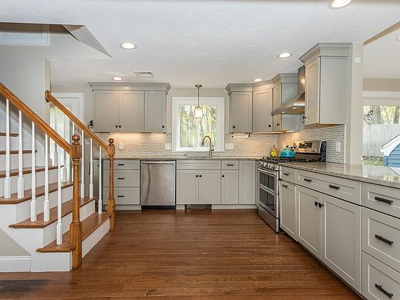 - Features: Closet/Cabinets - Custom Built, Countertops - Upgraded, Cabinets - Upgraded, Exterior Access, Recessed Lighting, Remodeled, Stainless Steel Appliances, Gas Stove, Peninsula, Lighting - Pendant, Lighting - Overhead, Flooring - Engineered Hardwood