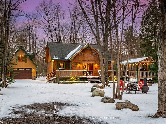 Welcome home to The Tiny Beaches: Your dream four season escape on the shores of Georgian Bay. This one of a kind custom built White Pine Log Home blends the charm of a cottage with the amenities of the city and has direct access to a fabulous private beach out your back door - reserved for members only; offering the utmost seclusion and privacy. Enjoy a serene lifestyle with easy access to water activities, exclusive walking trails, and the natural beauty and legendary sunsets of Georgian Bay with access to some of Georgian Bay's most desirable private shoreline. This custom home features an open-concept layout with soaring vaulted ceilings, exposed beams and warm wood finishes throughout. The array of windows seamlessly blend the inside and outside natural beauty of the home and property. The home was built in 2008 with generational longevity in mind boasting a main floor primary bedroom, a spacious loft bedroom, and a finished lower level with a rec room that provides space for additional sleeping accommodations/expansion if needed. The home itself is extremely well built and insulated and efficient from a level of comfort year round including forced air heating and cooling, a free standing wood stove, gas fireplace in the main living area, radiant in-floor heating in the lower-level bathroom, hot water on demand, a generator panel, 200 AMP service and European-style windows and doors for peace of mind/additional security. The other star of the property is the detached 32' x 18' garage with 9ft ceilings and a finished loft that was added in 2019. An annual association fee of $150 grants access to 4 private sandy beaches, waterfront parks and boat launch. Discover the lifestyle that awaits on the shores of Georgian Bay! This home offers exceptional value and abundant potential in an unbeatable location. See for yourself all this property has to offer. High Speed Internet available at the property. Owners are very accommodating on closing dates. Shows 10/10.