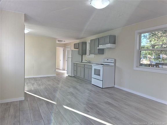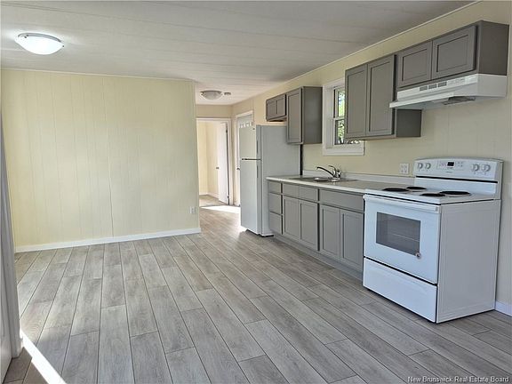 Move in before the Holidays! Cute & Cozy- 2 bedrooms,1 full bathroom on a leased lot. As you enter the home you are in the living room which is open to the kitchen. The kitchen has new cupboards, double stainless sink ,area to dine and a closet for your coats. There is a bedroom at each end of the home. Laundry area in the hall has cabinets above the hook up for the washer and dryer. In this area there is also a door to the back of the home ,where there is a new step. There is a storage shed 10 x 7 for your extra things. The home has been painted throughout and has new flooring. Great location with quick access to the highway, half way between Fredericton and Oromocto. Make is Atalntic,Reg#3832.Quick closing available! PID# is PAN#.