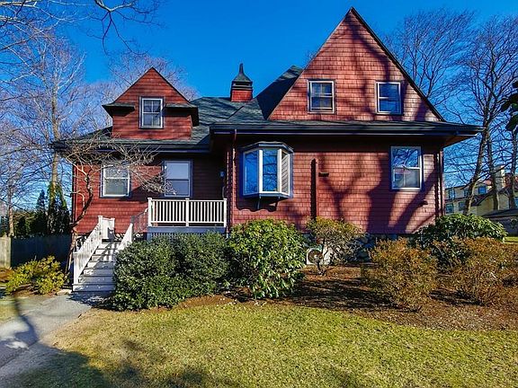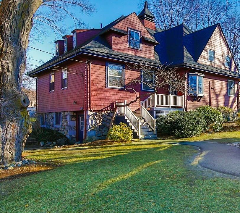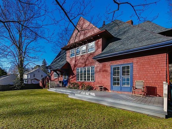 The William Goodwin Carriage House c. 1892 first time to market! This converted carriage house offers 8 room, 4 bedrooms and 3 full baths. With its enormous used-brick fireplace, the 27x18 living room is large enough for the largest get-together. South facing French doors w/ lots of natural light, lead to the sunny back deck. Preserved hardwood flooring under the carpet. A large kitchen w/ plenty of working space and eating area. The formal dining room is highlighted with built-in china cabinets. Cozy first floor den w/ fireplace and lots of natural wood accents. A convenient first floor bedroom and tiled full bath/shower. The second floor offers three good sized bedrooms and plenty extra storage; unusual for homes of this era. South facing master bedroom custom built-ins, a sitting area and colonial style fireplace; the perfect place to spend those chilly New England afternoons. More great custom built-ins in the master bath. This is a unique offering. Make an appointment today!
