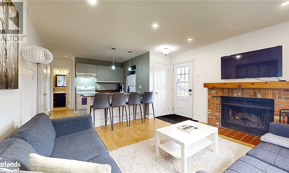 SEASONAL RENTAL, Fall Season. Looking for a piece of paradise in Collingwood? This hidden gem is set amongst the trees in a quiet condo community. Bright and spacious - 23 Dawson Drive #101 contains 2 well-appointed & spacious bedrooms, 2 full bathrooms and spans nearly 800 square feet. The balcony off the primary bedroom/living room is a real treat. You'll be surrounded by trees and the soothing sounds of birds chirping. BBQ on deck, enjoy your morning sip of coffee outside, along with cocktails and sunsets! Spacious living area equipped with a sofa, TV and wood burning fireplace. Ensuite laundry. Kitchen pantry. Immaculately maintained. Recent upgrades include: electronic thermostats, portable A/C units, pot lights in the living room and freshly painted. The condo offers incredible value. Well-located, close to grocery stores, cafes, restaurants, live music venues, walking trails, Golf Courses and the Georgian Trail. Just a quick drive to Scandinave Spa and Blue Mountain Village. Live your best life in Collingwood - with a plethora of activities available from your doorstep. Fully furnished rental - well equipped with plates, cutlery, Keurig Coffee Maker, Air Frier and standard appliances. Rental rate does not include utilities (water, sewer, hydro, water heater, internet). Exit cleaning fee applies. Damage deposit required, as well as Tenant Insurance. Also available over Ski Season (different rates). (id:41440)
