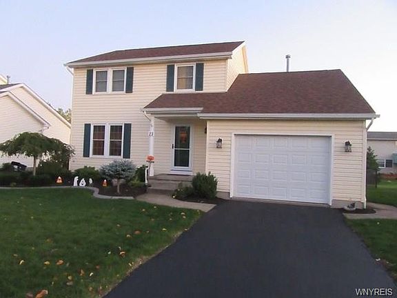 Plenty of living space in this well-maintained 3 bedroom Colonial. Large eat-in kitchen flows right into family room adorned w/ cathedral ceilings. Additional front room could be used as an office, den or formal dining room. French doors lead out to stamped concrete patio & large yard offering lots of room for entertaining & play. Updates include: vinyl clad replacement windows throughout (2014), front interior, storm and garage entry doors (2014), 14x10 shed (2013), front landscaping (2012), high efficiency furnace & AC (2011). Make this quiet neighborhood street your new place to call home!