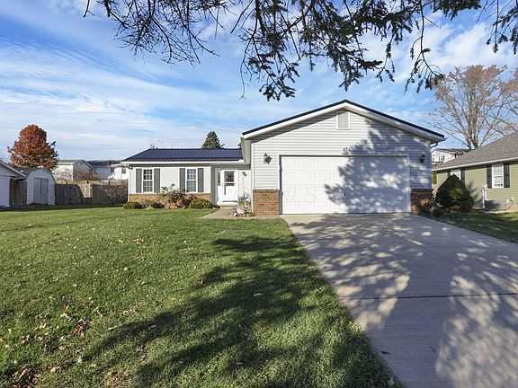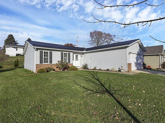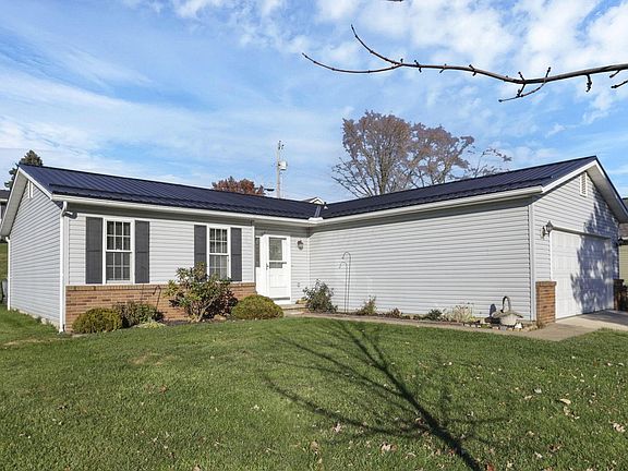 Don't miss this move-in ready ranch tucked at the end of a quiet cul-de-sac! Enjoy major upgrades including a brand new 2025 metal roof and new cement driveway. Inside, beautiful hardwood floors, carpeted bedrooms and an open floorplan with vaulted ceilings make living easy. The all-electric heat averages just $50/month, giving you comfort and savings. You'll love the oversized garage, large storage shed, and fenced backyard with a small dog run. Perched on a hill overlooking Mt. Vernon and just minutes to shopping, this home delivers the perfect mix of privacy, convenience, and value.