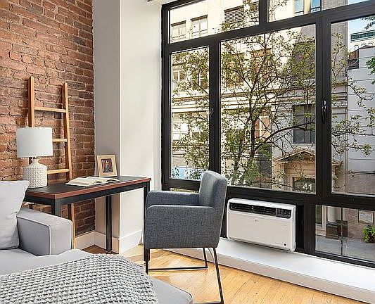 This Greenwich Village 1BR loft in a pre-war doorman building checks all the boxes of a classic downtown apartment. Exposed brick and an 8 foot wall of windows frame the view onto tree-lined 11th Street. The soaring 11 foot ceilings and large rooms create a true sense of volume.