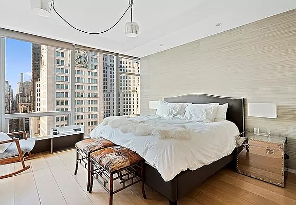 Stunning high floor corner 2 Bedrooms, 2 Marble Baths, 1,328 S.F. The apartment boasts spectacular vista views through floor to ceiling windows overlooking Madison Square Park with the Empire State Building to the north, the Freedom Tower to the south and open city views to the west. An open kitchen with custom satin rubbed Indian Laurel wood cabinetry, island with seating wrapped with Calacatta Borghinin marble, top of the line Miele fully integrated appliances, master bath clad in Italian travertine with double under mount sinks, voila polished chrome fixtures, heated floor, a deep 6' soaking tub and separate shower with frameless glass enclosure, a second bath finished in honed Calacatta Gold marble also with heated floor, vanity with under-mount sink, voila polished chrome fixtures and a large shower with frameless glass enclosure, 9' ceilings, state of the art HVAC systems controlled by nest thermostats, electric window shade systems, and 9-inch European wide plank white oak floors. The Cetra-Ruddy designed One Madison, a 60-story luxury condominium situated at the nexus of the city's most charismatic and vibrant neighborhoods: Flatiron, Gramercy and NoMad. One Madison offers unparalleled services and extensive amenities that include a full-time doorman and concierge, great room with dining room and lounge, parlor room, screening room, a staffed catering kitchen, state-of-the-art fitness center, yoga room, 50-foot heated indoor swimming pool, and a spa with a glass enclosed steam room overlooking Madison Square Park.