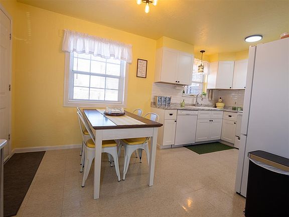 Cute as can be and move in ready!! This adorable home has been beautifully updated with a new kitchen (all appliances included), fresh paint, newer carpet. It also offers two big bedrooms, a large living room, a cozy dining nook and a huge walk in pantry..(mini freezer included). Outside, you'll enjoy sitting on the oversized patio overlooking the nicely landscaped backyard with two storage sheds for all the stuff!! And an added bonus...NEW roof. (May 2025)