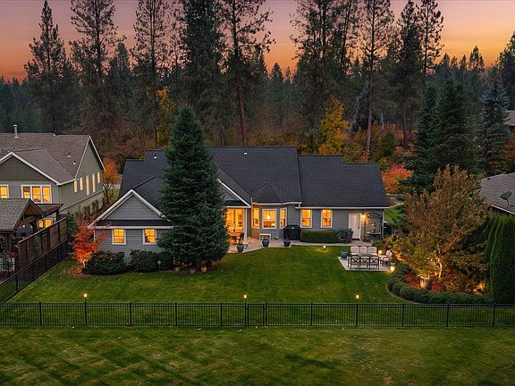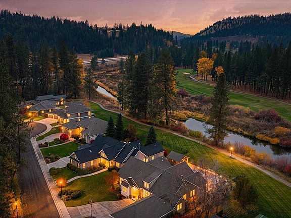 Golf course living at its finest in an incredible Latah Creek setting. This 4 bed, 3.5 bath, 3943 sq ft home sits on a .32 acre lot with wide, unobstructed valley views. The main level includes a primary suite with a gas fireplace, walk-in closet, remodeled bathroom with heated floors, and a north-facing balcony that opens right over the water. Tall ceilings, hardwood floors, crown molding, and a dining room with built-ins give the interior a refined feel, while three fireplaces add warmth throughout. The chef’s kitchen has an island and a butler pantry with easy access to the heated covered patio. Updates include a new roof, new exterior paint, new hot water heater, and a water softener. 3-car attached garage plus a dedicated golf cart garage. Convenient access to Hwy 195 and minutes to Qualchan Golf Course, shopping, restaurants, schools, and the airport.
