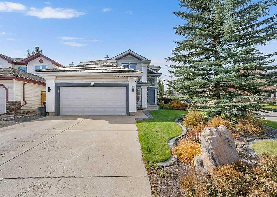 ** Open House, Sunday, Nov 2, 12-2pm ** Immaculate and beautifully maintained two-storey home on a quiet street in Valley Ridge — just steps from parks, pathways, and the golf course. This bright, welcoming home offers over 1,909 sq. ft. of living space above grade, plus a developed basement. All thoughtfully updated for modern comfort. A spacious foyer opens to soaring vaulted ceilings and expansive windows that fill the home with natural light. The main floor offers a versatile front office or den, a generous living area with gas fireplace, and a formal dining space ideal for entertaining. The renovated kitchen features granite counters, stainless steel appliances, a corner pantry, and a large island adjoining the breakfast nook with garden views. A mudroom with laundry and a guest bath complete the main floor. Upstairs, you’ll find three large bedrooms, including a serene primary suite with a walk-in closet and full ensuite bath. The lower level is fully developed with a family room and second fireplace, a fourth bedroom, full bath, and expansive storage space. Enjoy the incredible west-facing backyard — complete with mature landscaping, tiered patio, and firepit — perfect for relaxing evenings. Oversized double garage (28’ deep on one side) provides exceptional utility for larger vehicles or a workshop area. Recent improvements include new windows, extensive landscaping, upgraded flooring, newer mechanicals, and refreshed finishes throughout. Ideally located with quick access to Highway 1, the mountain parks and amenities, this move-in-ready home offers warmth, functionality, and enduring value in one of NW Calgary’s most desirable communities.