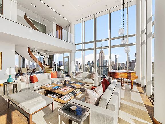 Crowning One Madison from the 58th to the 60th floors, the Triplex Penthouse boasts nearly 7,000 square feet of open interior space with dramatic full-height windows that offer breathtaking 360-degree skyline and river views. The apartment offers an extraordinary perspective of the island of Manhattan and its iconic buildings. On a clear day you can see as far as the Atlantic Ocean. This residential masterpiece was designed with the utmost sophistication and aesthetic integrity.