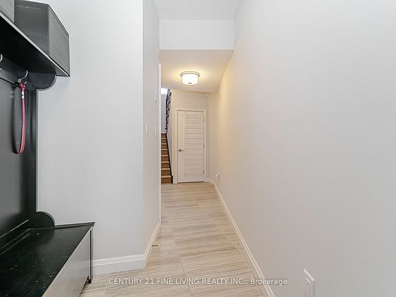 Beautifully designed end-unit 2-bedroom townhome offering two full baths, a large terrace, two balconies, & two convenient parking spots, all nestled in a peaceful, tree-lined setting. From the moment you step inside, you're welcomed by a large, inviting foyer setting the tone for this bright airy home, thoughtfully designed with everything located on one floor, filled with natural light from its many large windows. The main open-concept living area features elegant wood floors, creating a warm, sophisticated space perfect for entertaining or relaxing. The modern kitchen is a true showstopper, featuring mocha-coloured cabinetry, granite countertops, a chic backsplash, & an abundance of storage with numerous cabinets. A massive center island with a double sink and ample seating makes it perfect for casual dining or gatherings with friends & family. The open-concept layout flows seamlessly into the breakfast/dining area, which opens onto a large terrace - perfect for family BBQs or enjoying serene wooded views. The primary suite is a private retreat, featuring a 3-piece ensuite with a large stand-up shower with glass doors, dark wood cabinetry, and granite counters. It also includes a spacious walk-in closet & direct access to the terrace, the perfect place to start or end your day with peaceful tree-lined views. The second bedroom is equally charming, complete with its own private balcony, while the second full bathroom features a bathtub, matching dark cabinetry, and granite counters for a cohesive and stylish design. It has ample storage & closet space throughout, ensuring practicality alongside its modern style. It includes a separate attached garage with automatic garage door, additional covered parking, and direct access to the home for ultimate convenience. Every detail of this home has been designed to provide comfort, style, & modern living with easy access to amenities like shopping, restaurants, schools, & parks, ensuring an excellent lifestyle experience!