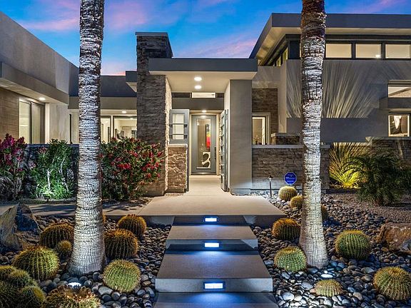 Stunning is the best word to describe this one of a kind home. The epitome of desert elegance - 23 Emerald Court located in the highly desirable Revelle at Clancy Lane in Rancho Mirage. This exquisite home offers a seamless blend of modern sophistication and serene desert charm. With 3 bedrooms and 3.5 bathrooms, the open-concept design is perfect for both entertaining and everyday living. The spacious living areas are flooded with natural light, highlighting the gorgeous high-end finishes and custom details throughout. The chef's kitchen is a dream, featuring Wolf, Sub-Zero and Asko appliances, while the expansive living room offers panoramic views of the lush, private yard and the surrounding desert landscape with stunning mountain views. Step outside to your own personal oasis with a beautiful negative edge pool & spa, perfect for enjoying the incredible year-round weather. Custom designed interior hardwired roller shades in the living room and great room in addition to floor to ceiling motorized exterior screens. Located just minutes from world-class golf courses, shopping, fine dining, and entertainment, this home offers the best of Rancho Mirage living in an exclusive, tranquil setting. Come experience the luxury and lifestyle that awaits at 23 Emerald Court. Schedule your private showing today!