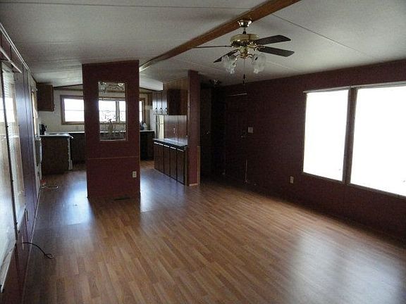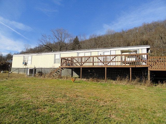 Older single wide on 5 acres. Attached deck on front of property views the acreage and neighbor's pond. The owners pond is further down the hill from view offered by the deck. Property has storage shed which can remain which is currently being used as a chicken coop.