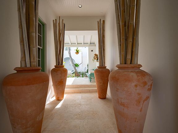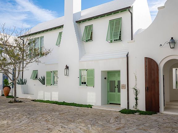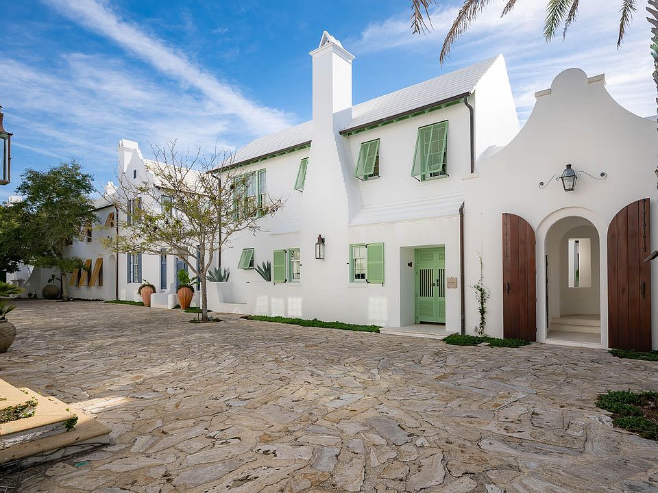 The Sea awaits with the offering of 23 Governors Court situated on the iconic Sea Garden Walk pedestrian path leading to the Gulf of Mexico. ''Santigua'' as this home was formerly known was Alys Beach's original statement home. Architect Gary Justiss created this masterful design embodying the original Alys Beach palette inscribed by the Bermudan & Antigua, Guatemalan architecture.Entering the courtyard lends itself to utter serenity accented by the grotto swimming pool and lone palm tree standing above the vibrant landscape. Outdoor privacy integrates with indoor connecting the spaces by way of covered loggias for afternoon cocktails poolside. The first floor encapsulates one's living needs having interconnected kitchen, dining, and living rooms boasting custom "reeded" Oak cabinetry, concrete counters on both beverage center & kitchen tops. Wolf & Sub-Zero appliances complement the tasteful kitchen. Each of these spaces share the timeless views of the beautiful courtyard.