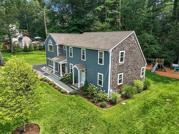 Offer deadline Monday 8/26 at 5 pm. Masterfully renovated saltbox colonial, lovingly transformed over six years of ownership. Situated on a cul-de-sac in Marshfield's popular Black Mount neighborhood. 3 beds, 2.5 baths on a level, half-acre lot. Kitchen & first floor remodeled to showcase a modern aesthetic, with new cabinetry, breakfast bar, stainless appliances, and a gorgeous subway tile backsplash. Blended open-concept design with a formal dining area and generous space for entertaining. Master suite with full bath and ample storage. Escape the summer heat courtesy of 4 mini-split heat pumps. Upstairs hallway currently serves as a bonus room, ideal for an office or study. Conveniently located second-floor laundry. Unfinished basement with endless potential. Recent major updates include new shed (2022) and playroom conversion (2023), adding approximately 400 square feet of space. Come see for yourself at the open house Saturday 8/24, or Sunday 8/25.