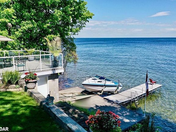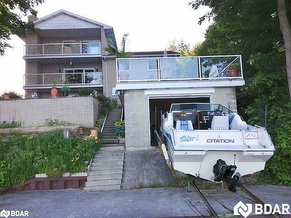 This custom, waterfront home has it all! 75 feet of waterfront, a boathouse, marine rail, dock & a custom home with possible in-law suite & separate lower level entrance & walk out! With almost 4000sq ft you will have more than enough room for the whole family! The main floor features a huge living room, a family room, custom kitchen that boasts many extras, separate dining room with fireplace & walk out to one of many balconies overlooking the water, an office, 2 piece powder room & welcoming foyer! The above grade, bright, open concept, lower level boasts a separate entrance & a sliding door walkout, full custom kitchen, great room with fireplace, a bonus room, cold room, full bath & sauna! Upstairs you will find a Primary suite with walk out to your own private balcony overlooking the water, a walk in closet, & a 3 piece ensuite, the 2nd and 3rd bedrooms both have walk outs to a huge balcony, a large 4th bedroom offers many options and another 4 piece bathroom! This home is an entertainer's delight with a massive patio overlooking the water, 16x24ft boathouse, marine rail & dock, tiered gardens & breathtaking view of Lake Simcoe! This home has been lovingly enjoyed & maintained by the original builder for over 40 years & boasts many updates including: Shingles '18, front dr & garage dr '17, tile bed '18, High efficiency (98%) hot water boiler 2016. 400 amp service. New Generac Generator, keeping you up and running when you need it most! Tankless hot water (owned) & more! Book a showing today and spend this summer on the water! Full list of features included in attachements