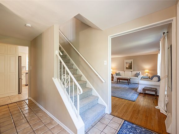Charming and spacious Dutch Colonial with level entry, brick walkway, and fresh landscaping for great curb appeal. Step inside to a bright floor plan with fresh paint throughout, original hardwood floors, and new carpeting. The updated kitchen features crisp white cabinetry, newer stainless steel appliances, and a versatile island with space for meal prep and bar seating. The cozy family room includes a fireplace and sliding glass doors that open to a rear screened-in porch, perfect for relaxing or entertaining. The primary suite offers a private full bath, while the updated main bath and generously sized bedrooms with ample closets provide comfort for everyone. The finished lower-level game room walks out to a brick patio and rear yard, adding even more living space. Additional highlights include a two-car garage, newer roof, and hot water tank. Located in a lovely neighborhood with convenient access to shopping, dining, I-79, I-70, and Route 19 and so much more!